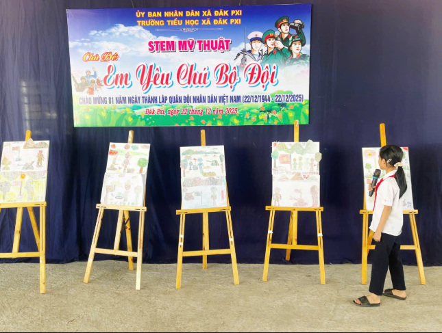 Nhân kỷ niệm ngày thành lập Quân đội nhân dân Việt Nam 22/12, vừa qua, Trường Tiểu học Đăk Pxi đã tổ chức hoạt động trải nghiệm STEM Mĩ thuật với chủ đề “Em yêu chú bộ đội”. Buổi trải nghiệm không chỉ là sân chơi sáng tạo mà còn là bài học ý nghĩa về lòng biết ơn đối với những người lính cụ Hồ.